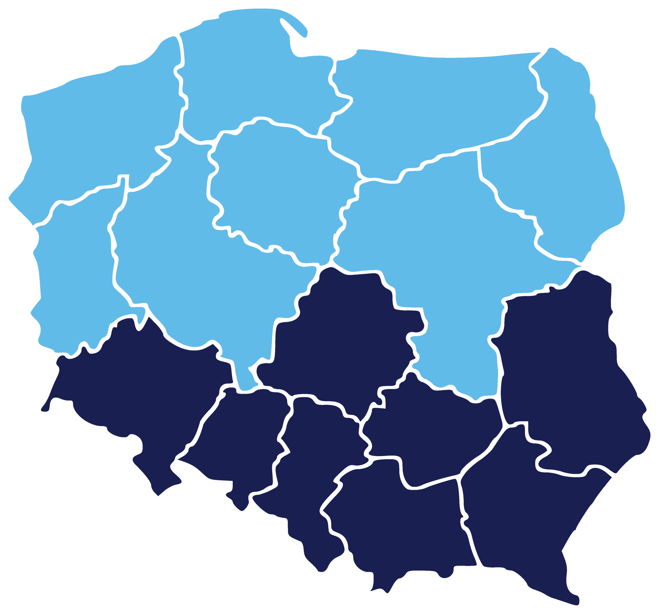 Dolnośląskie, Opolskie, Śląskie, Świętokrzyskie, Małopolskie, Podkarpackie, Lubelskie, Łódzkie